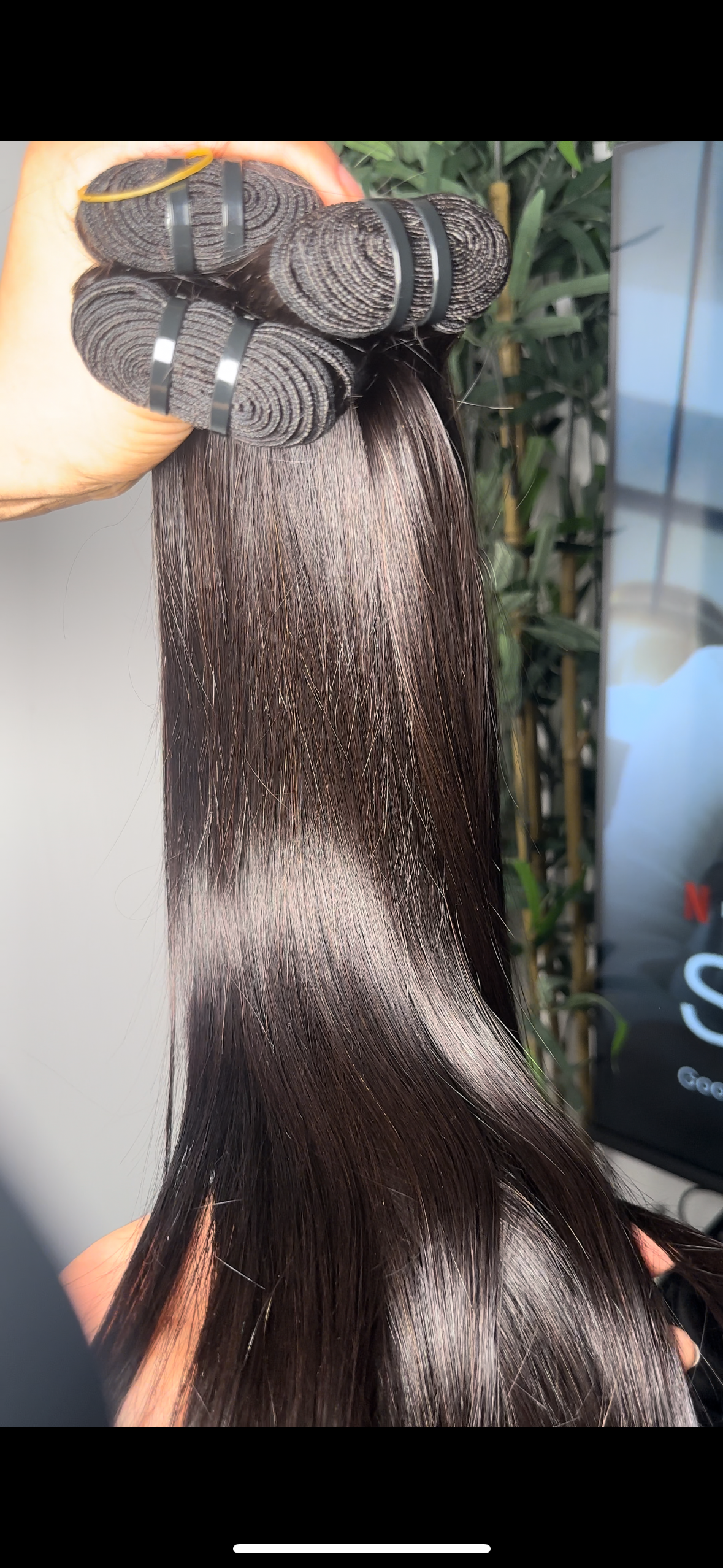 Our product can easily be flat ironed or curled to your own desire but we recommend using heat protectant before applying heat